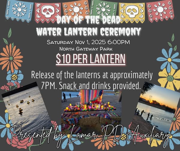 Day of the Dead Celebration Saturday, November 1st, 2025 Starts at 6:00 PM North Gateway Park Water Lantern Release at 7:00 PM Join us for a heartfelt evening as we honor DĂa de los Muertos, a traditional Hispanic holiday celebrating the lives of those who have passed. Decorate your own water lantern in memory of a loved one, and release […]